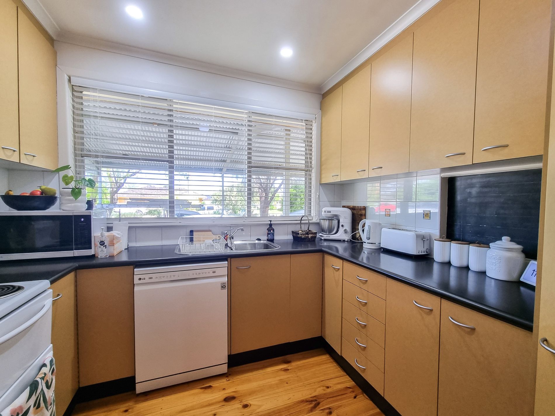 • Kitchen with dishwasher and electric cooking.
