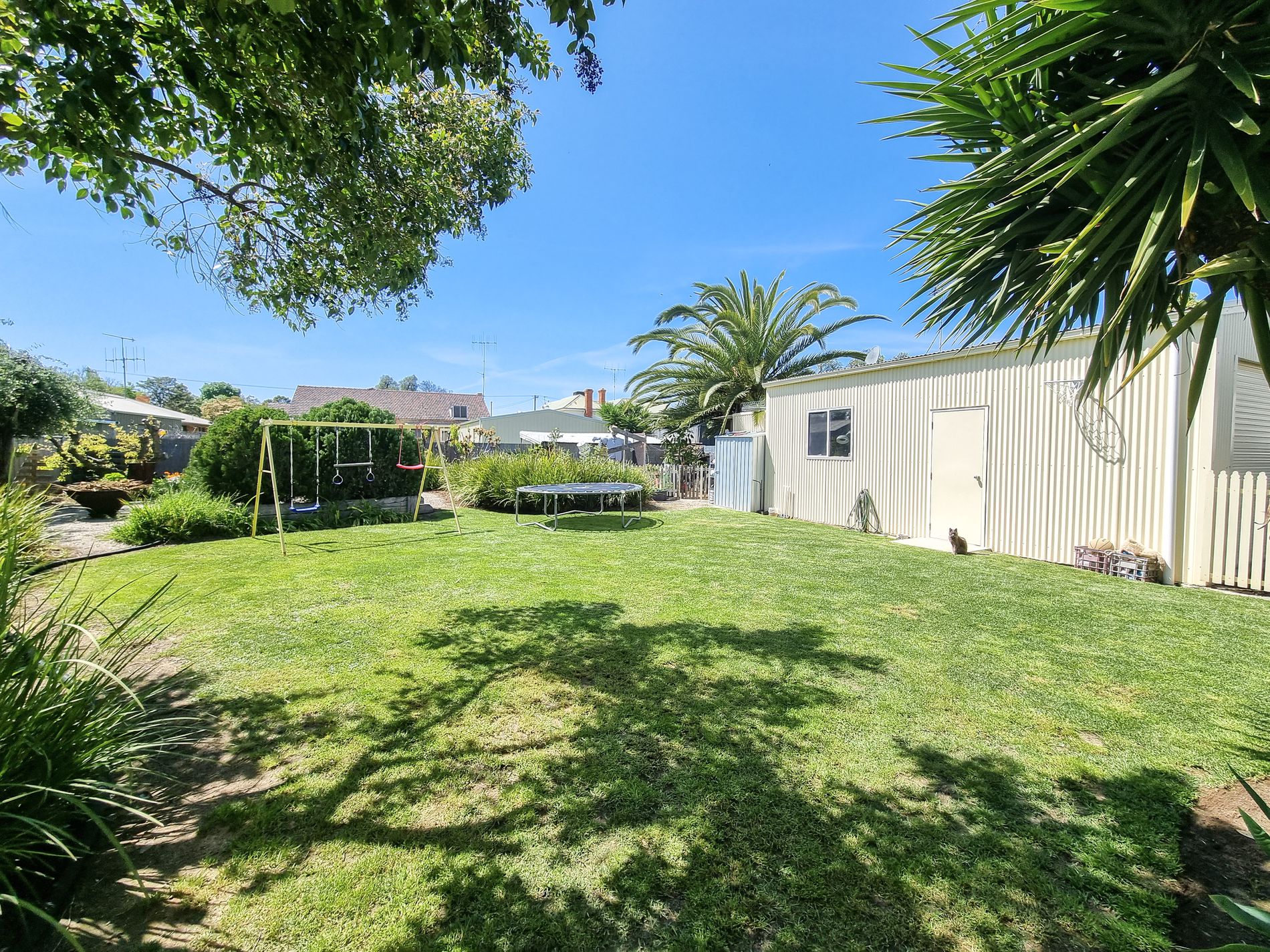 • Large secure yard with established gardens.