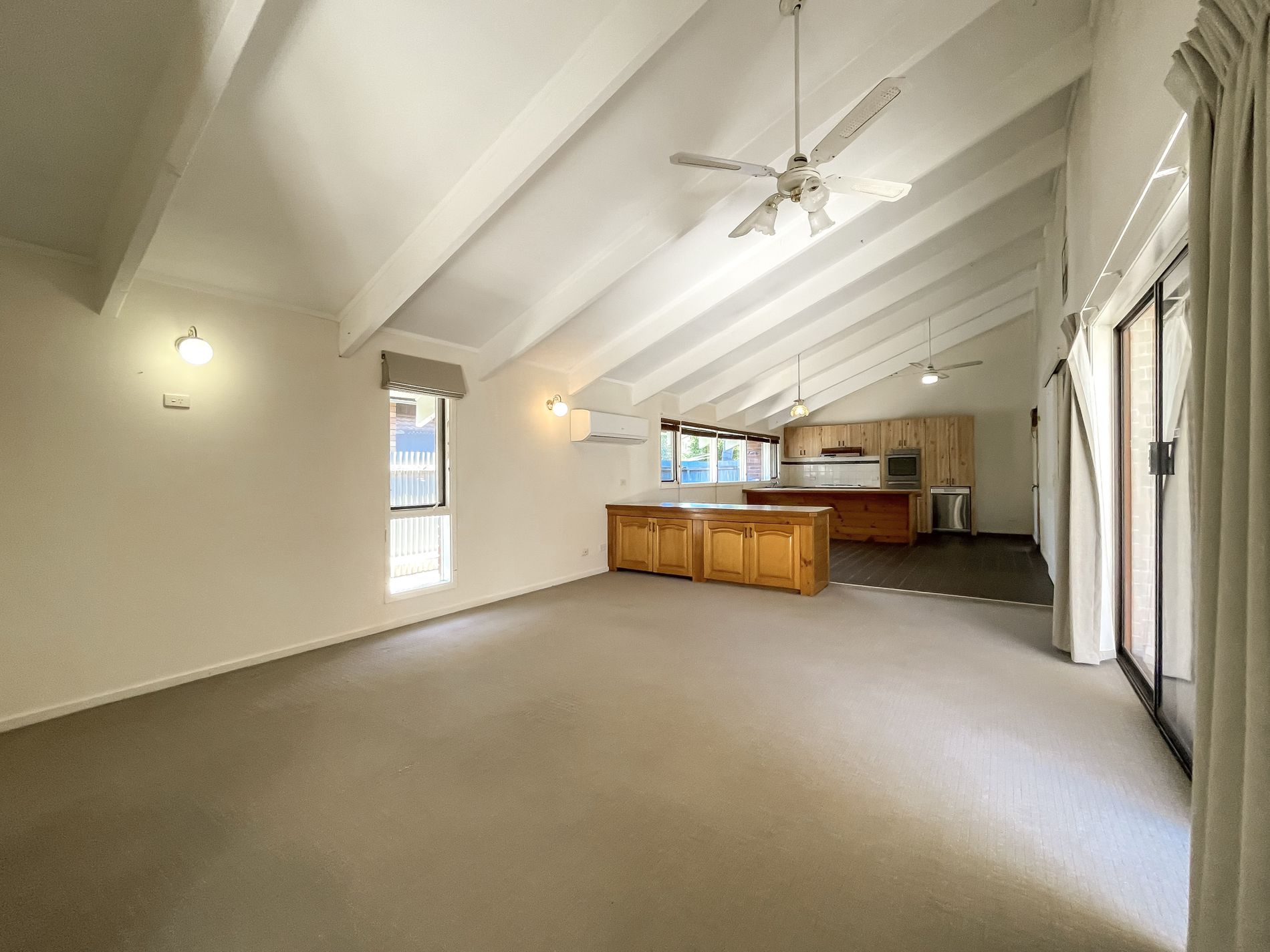 • Large open plan living room with soaring cathedral ceilings