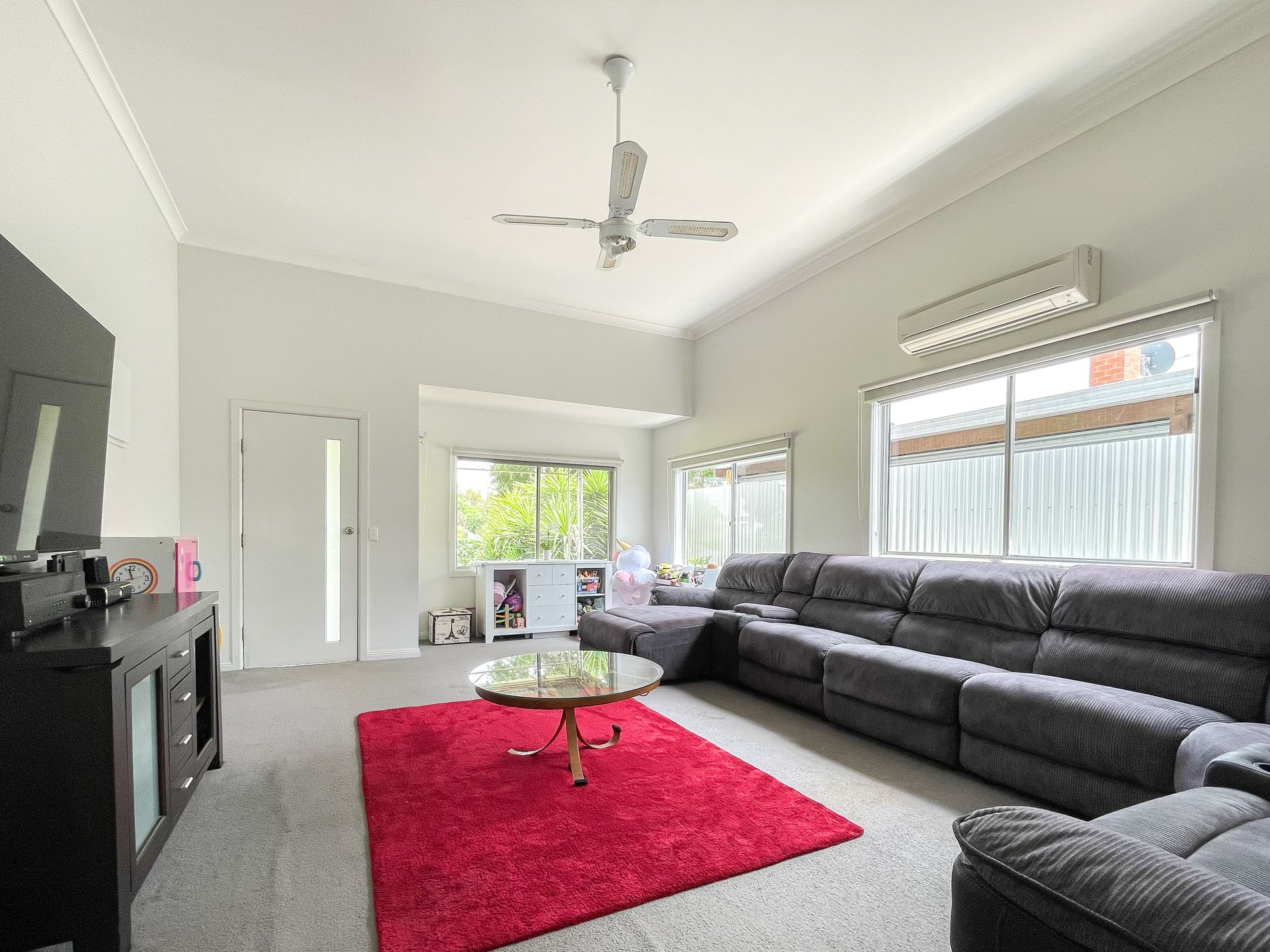 • Very appealing spacious carpeted lounge serviced by a split system and ceiling fan.