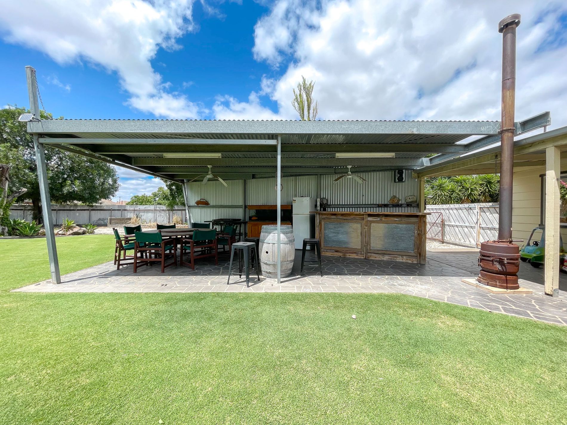 • The property also features an extensive BBQ area with a ceiling fan and patterned paving