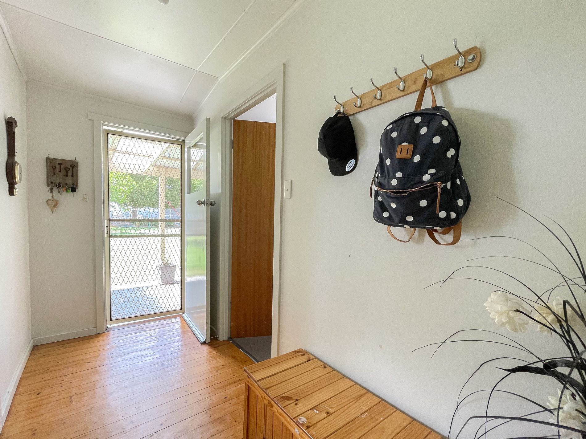 • Formal dining room enhanced by polished flooring, dado boards and ceiling fan.