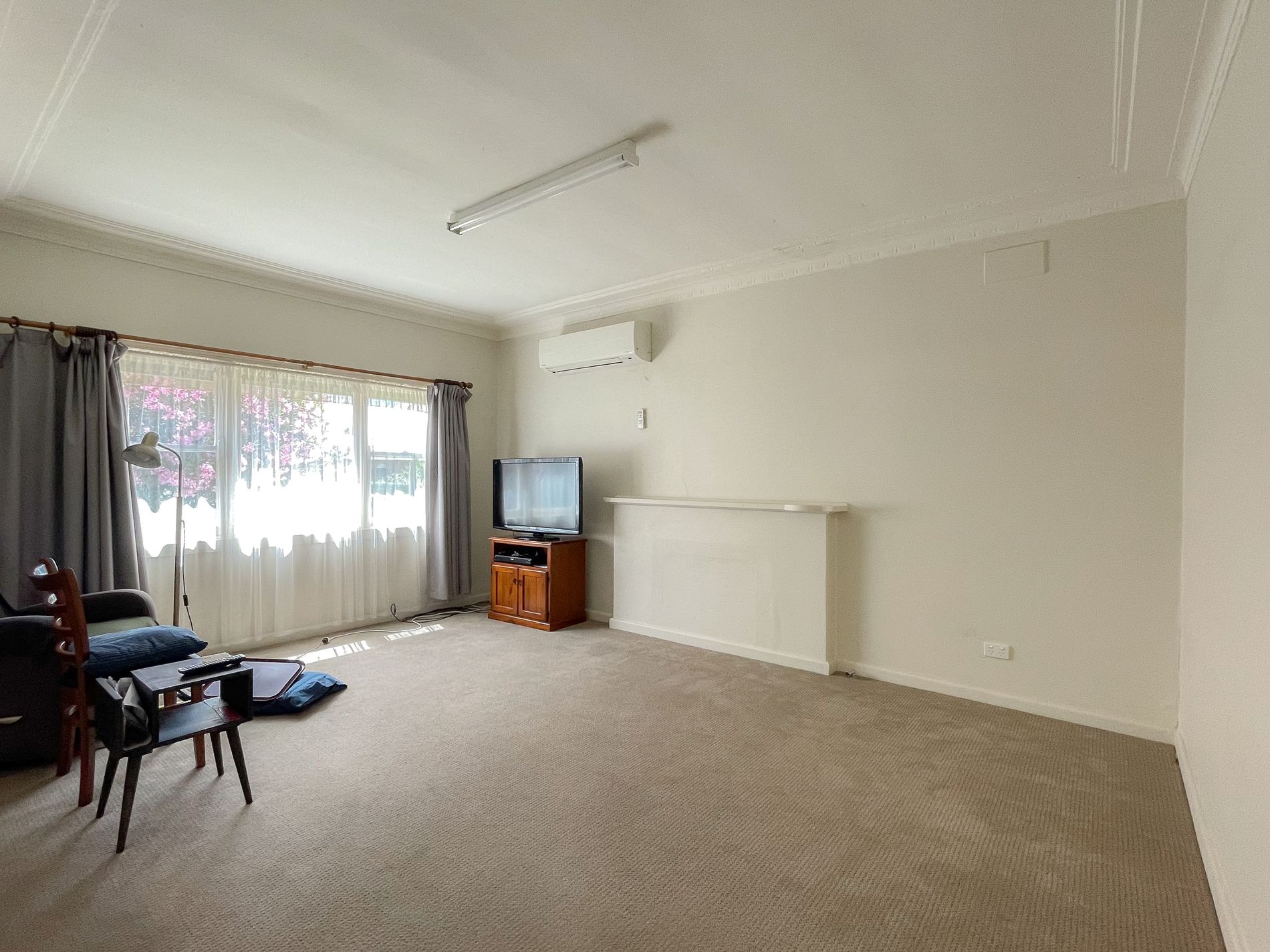 • Lovely big open living area serviced by vinyl and carpet together with a split system.