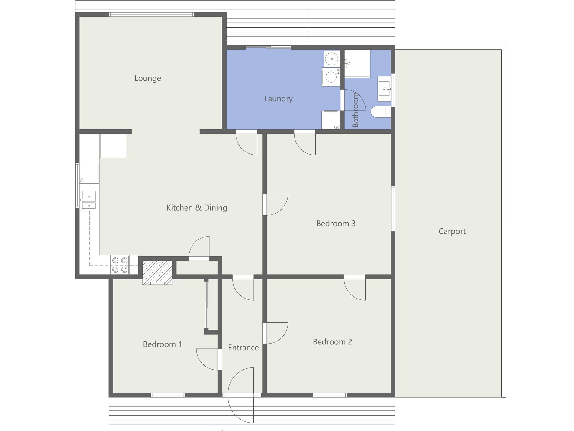 • Attractive entrance complemented by coloured glass, solid timber door and dado boards.