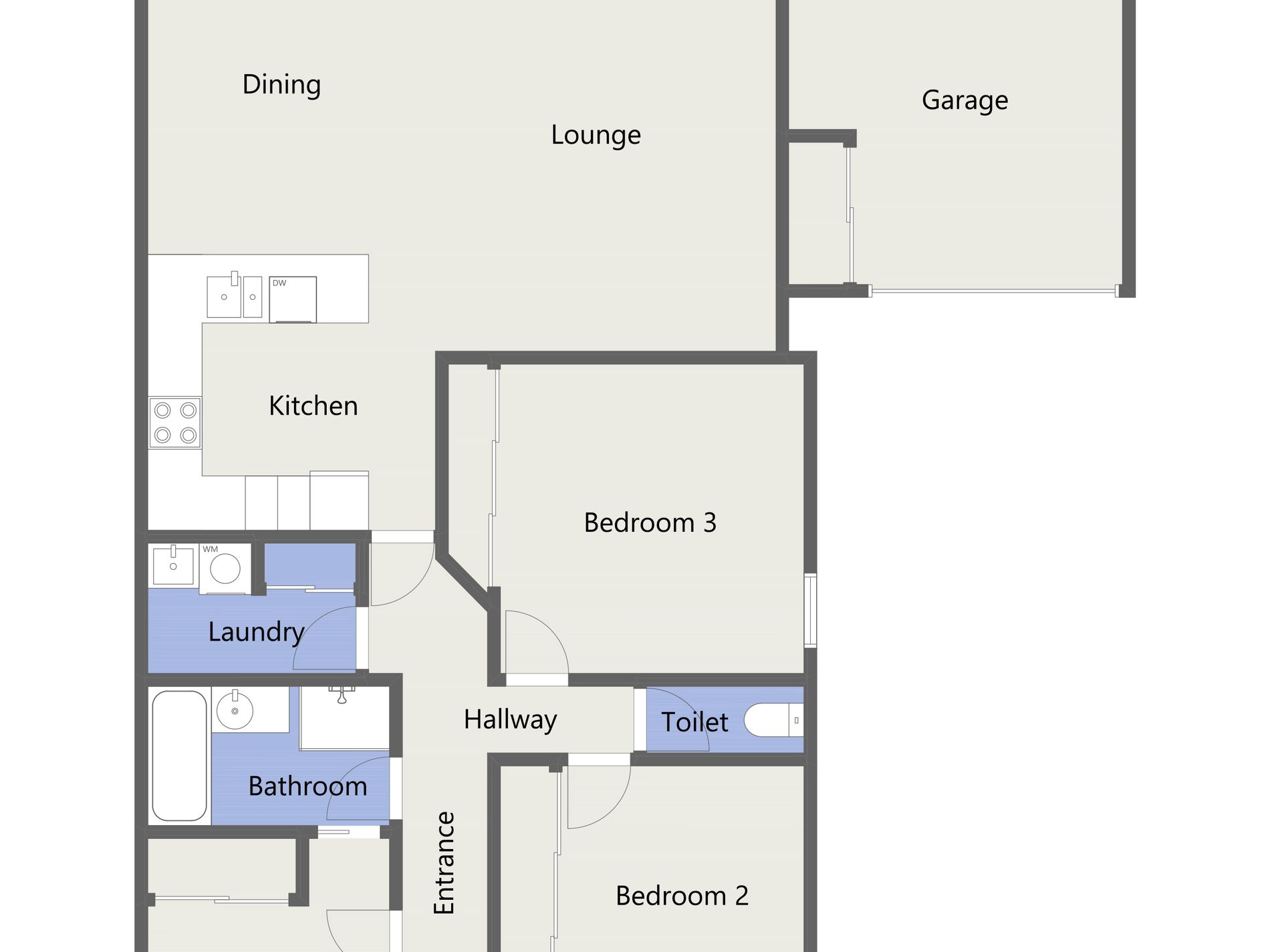 • Three bedrooms (BIR's)