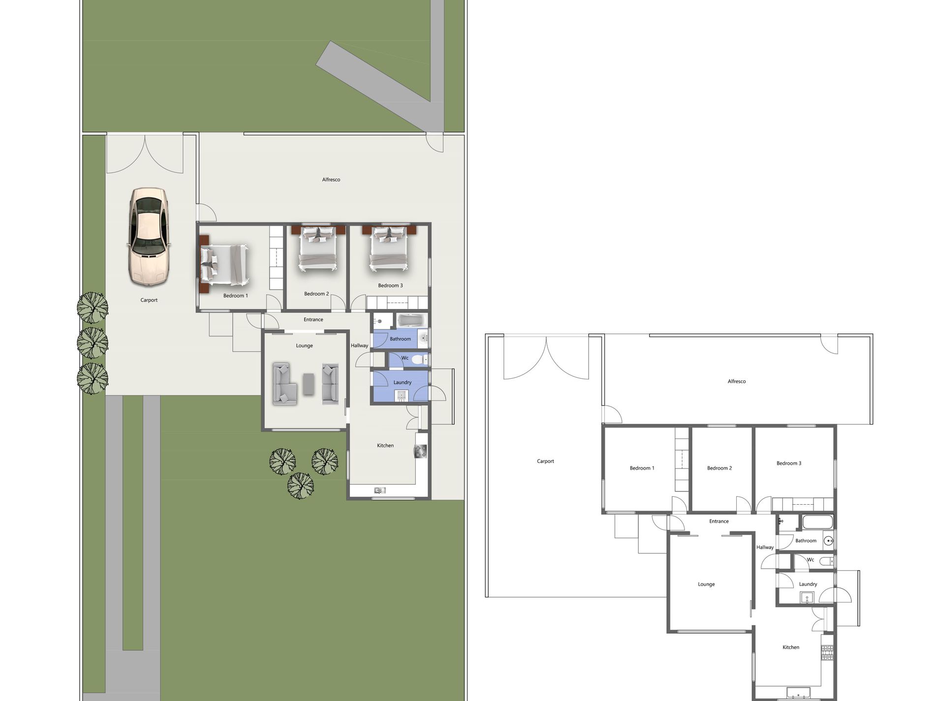 • Three bedrooms with ceiling fans (2 with robes)