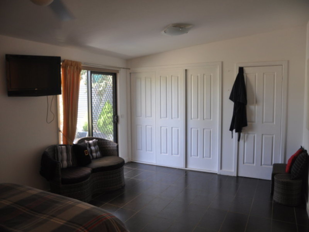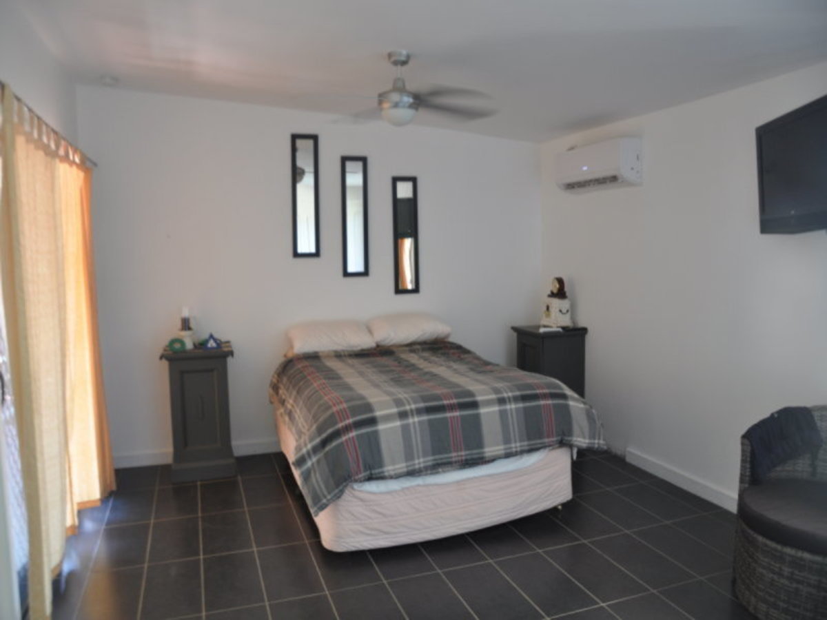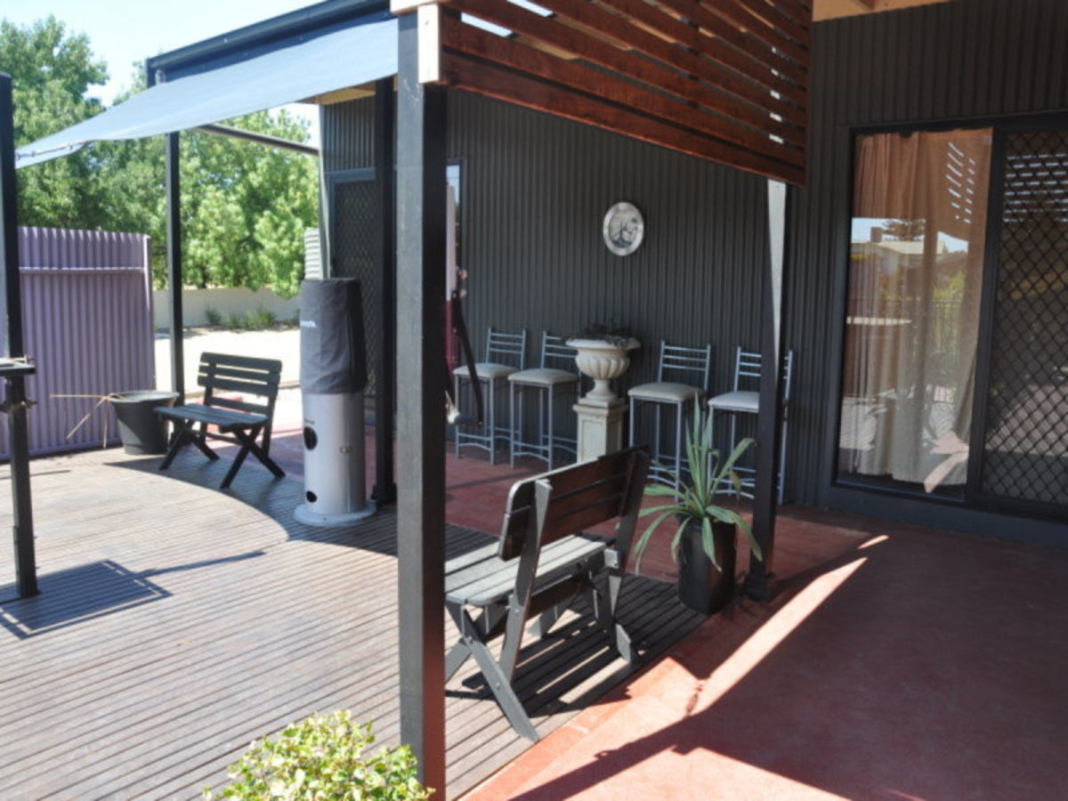 Open plan living with air conditioning and wood heating, 9m square under cover outdoor living overlooking the large spa. The huge new bathroom is luxurious with its deep free standing bath and large shower. On the opposite side of the entertaining area is the massive master bedroom with a wall of built in robes, split system air-conditioning and fabulous views of the garden. Bedroom 2 is also large with high glazed tile floors and overlooks the spa area. Outside you can wander through the gardens to 3 separate patio areas, depending on your mood and the sun. This quiet hideaway is perfect for summer holidays at Lake Boort or permanent living for the retiring couple that love their garden and outdoor living.