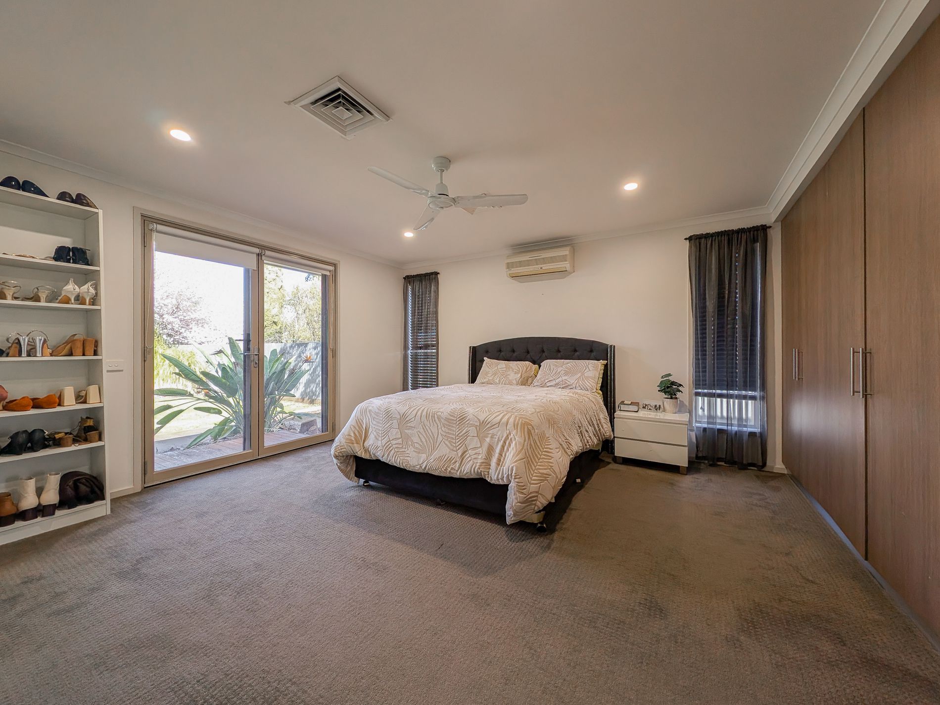 Master Bedroom: A stunning retreat with built-in robes, a split system, and a luxurious ensuite featuring a large double shower recess. Double glass doors open onto the rear yard, bringing in natural light and easy outdoor access.