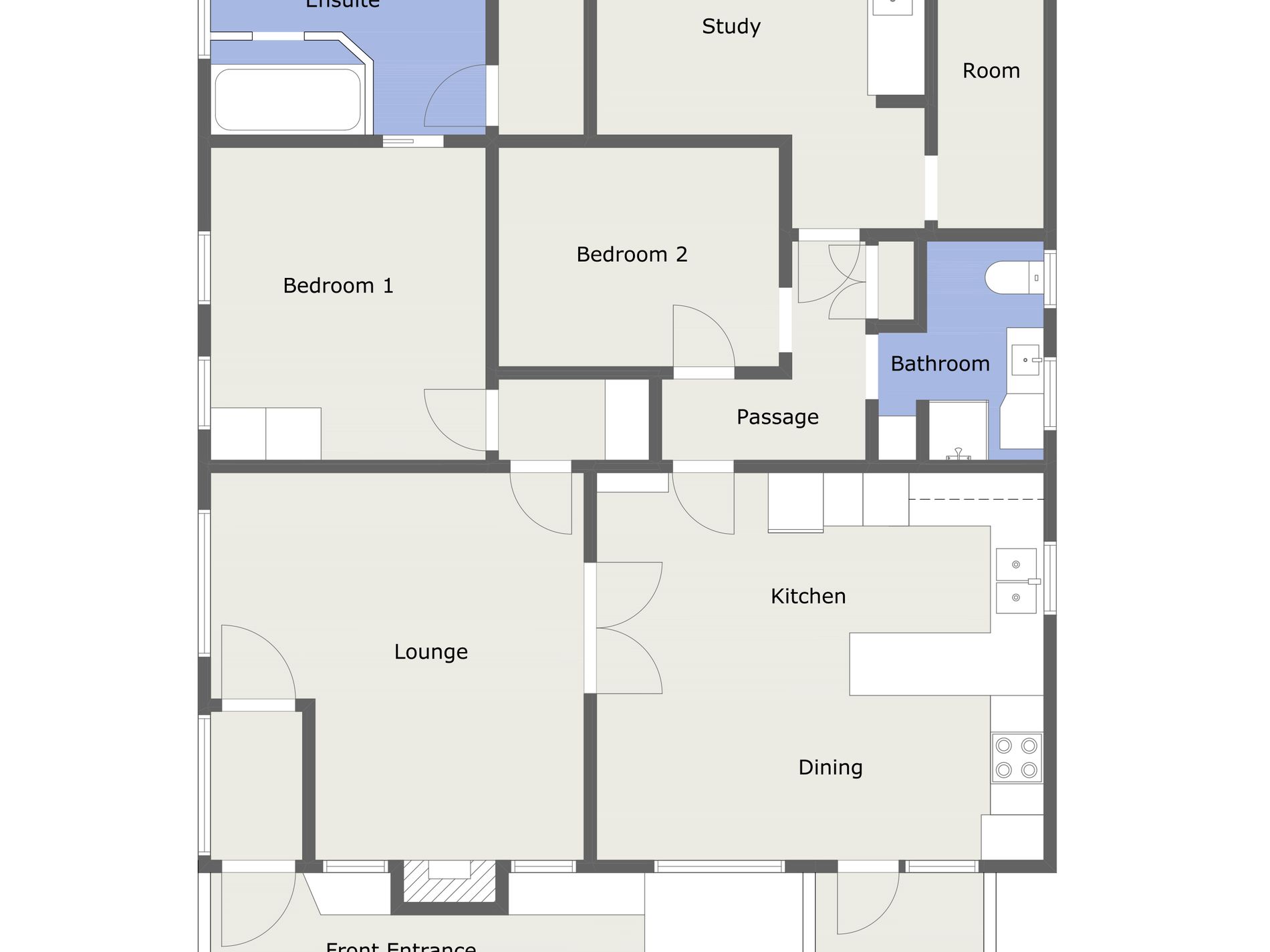 Solid home offering a spacious kitchen and dining area, open lounge with wood heater, and two bedrooms both with ensuite facilities. The spacious Sunroom at the back of the home offers opportunity for an additional bedroom.