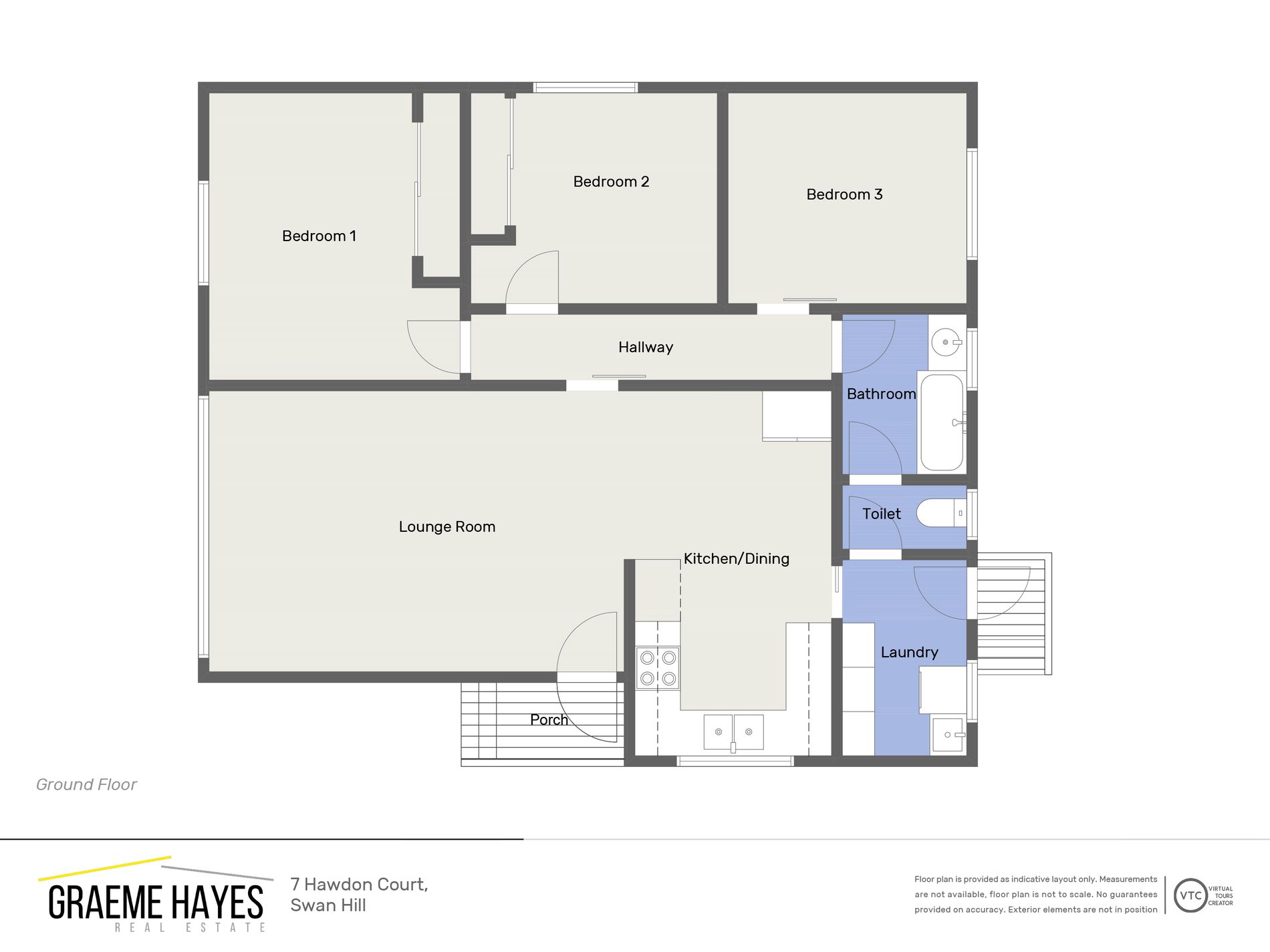 Accommodation includes three bedrooms, two of which are fitted with built-in robes, all serviced by a central bathroom.