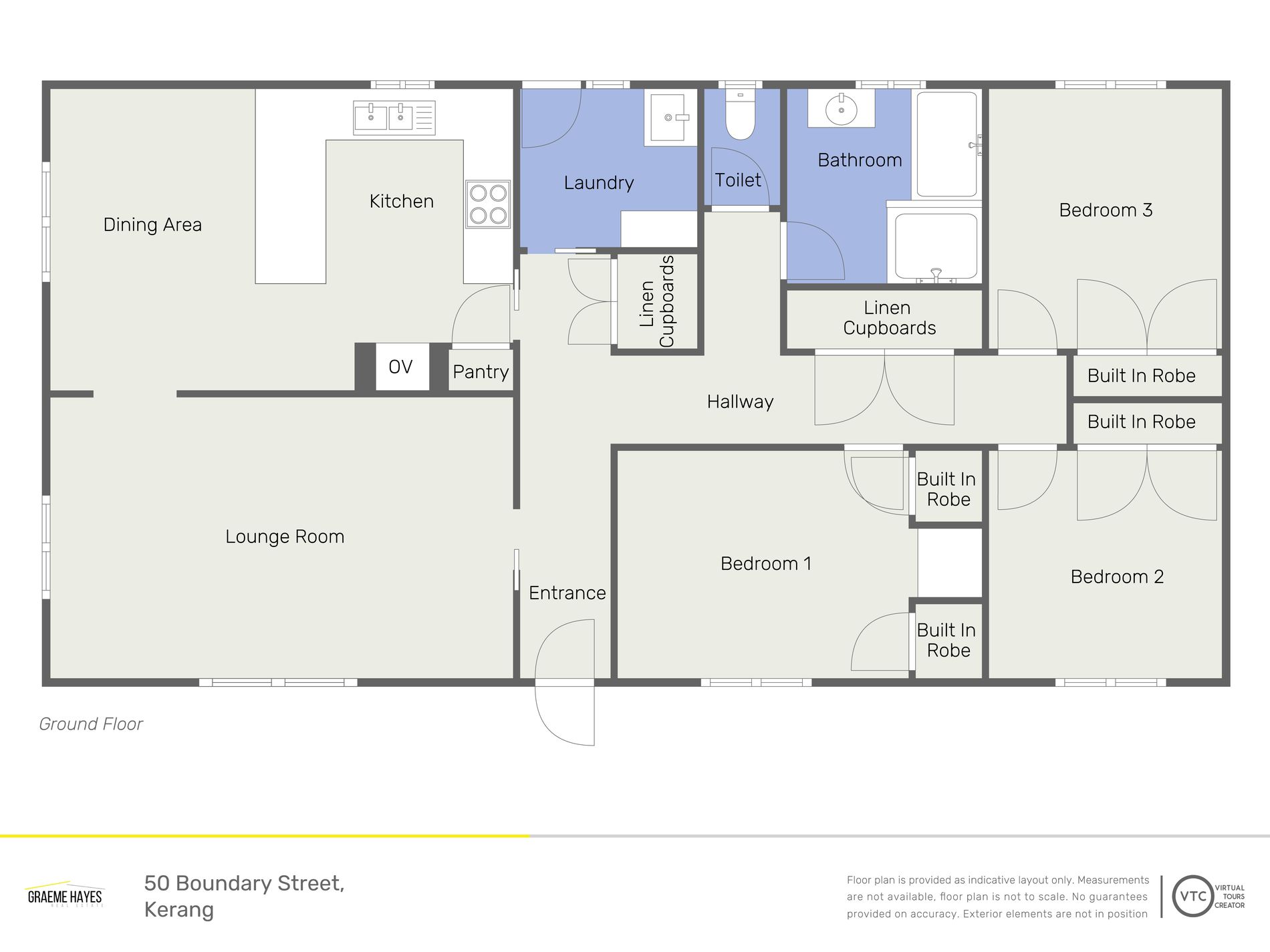 The kitchen and dining area offer ample cupboard and bench space, electric cooking, and a reverse cycle air conditioner. All bedrooms are generously sized with built-in robes, while the master includes a ceiling fan.