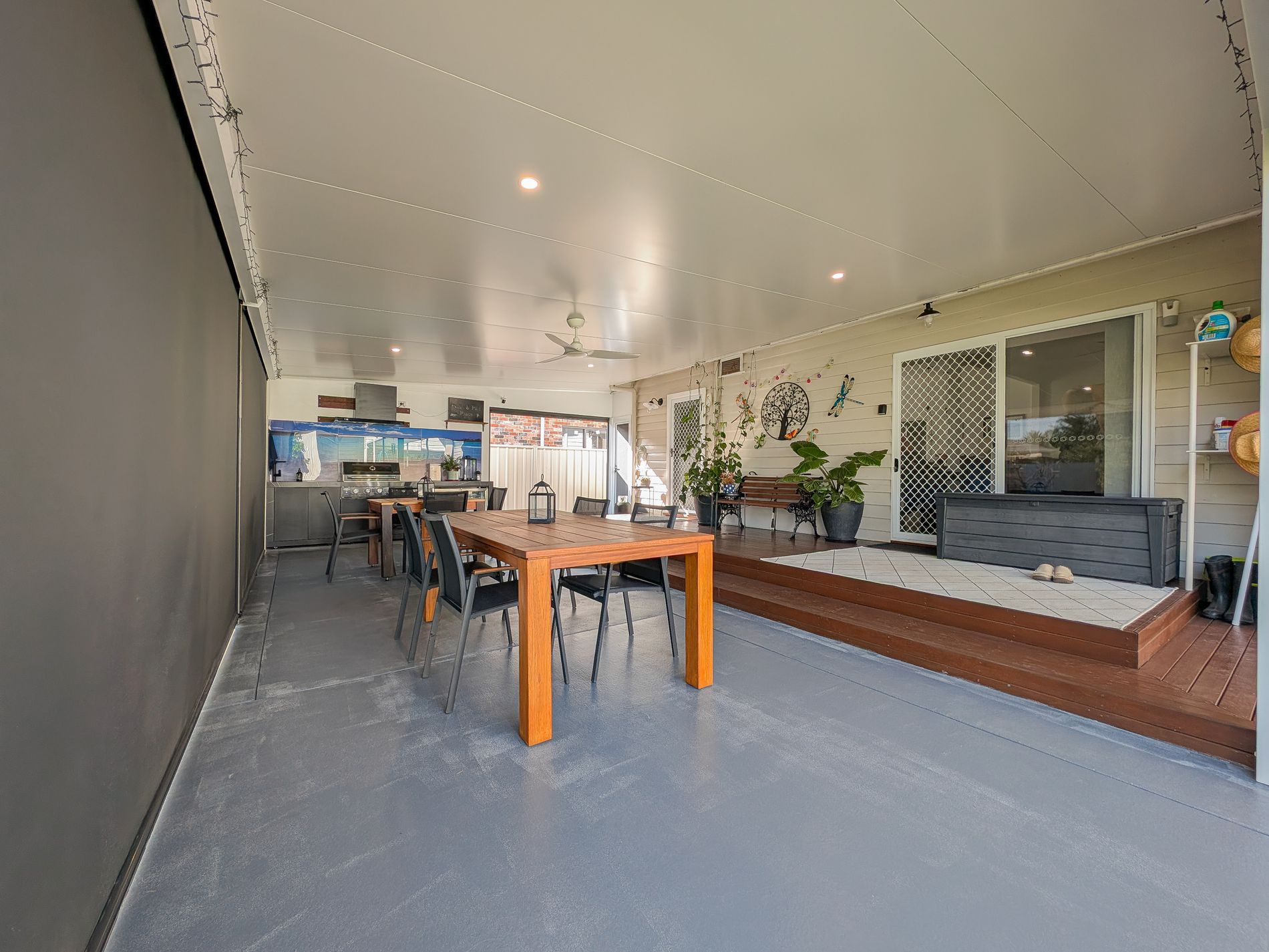 A true standout is the expansive outdoor entertaining area—complete with outdoor kitchen and zip‑track blinds—allowing for effortless year‑round gatherings, relaxation and easy indoor‑outdoor living. The massive space is ideal for hosting, dining or simply unwinding in comfort, no matter the season.
