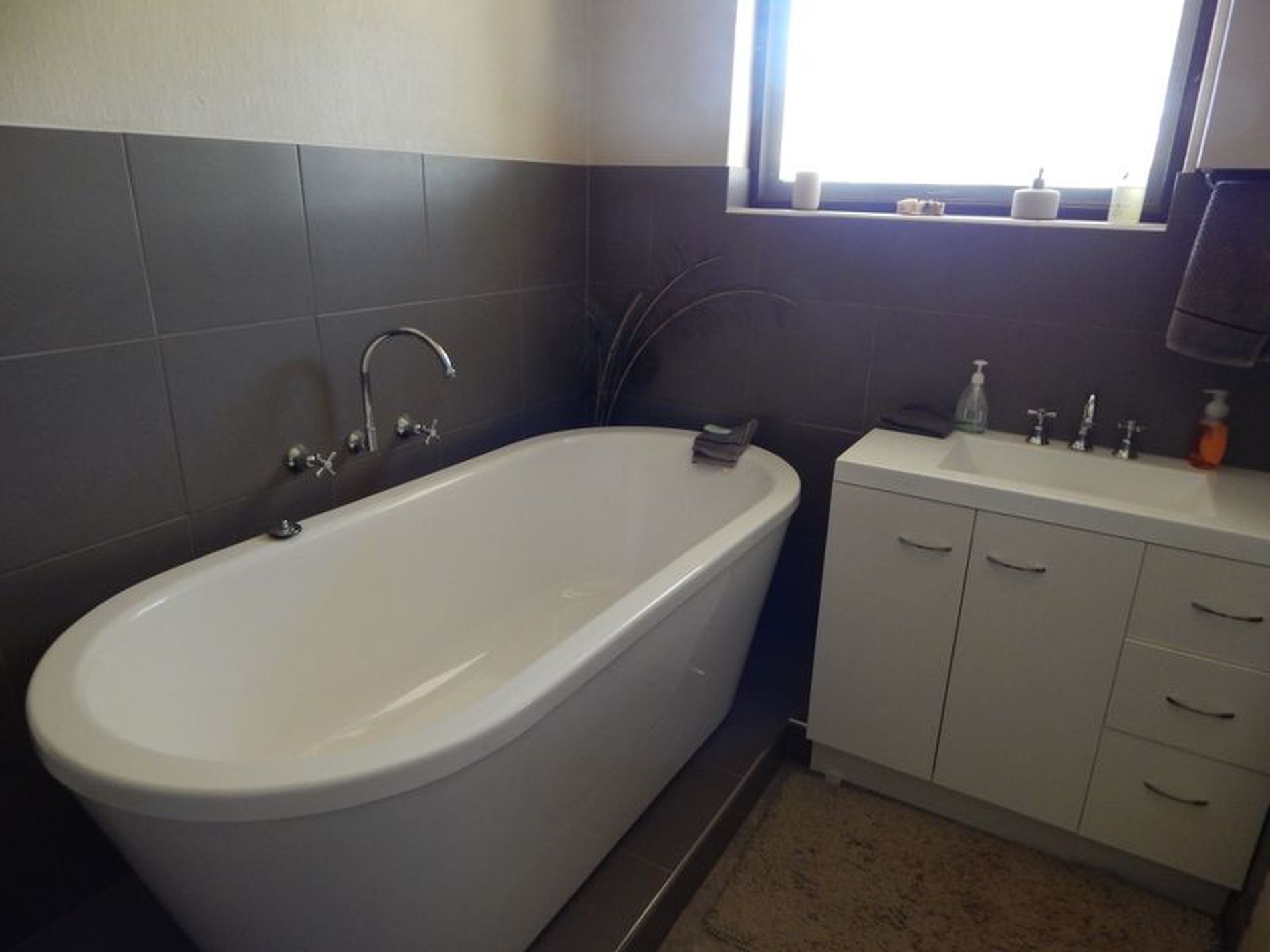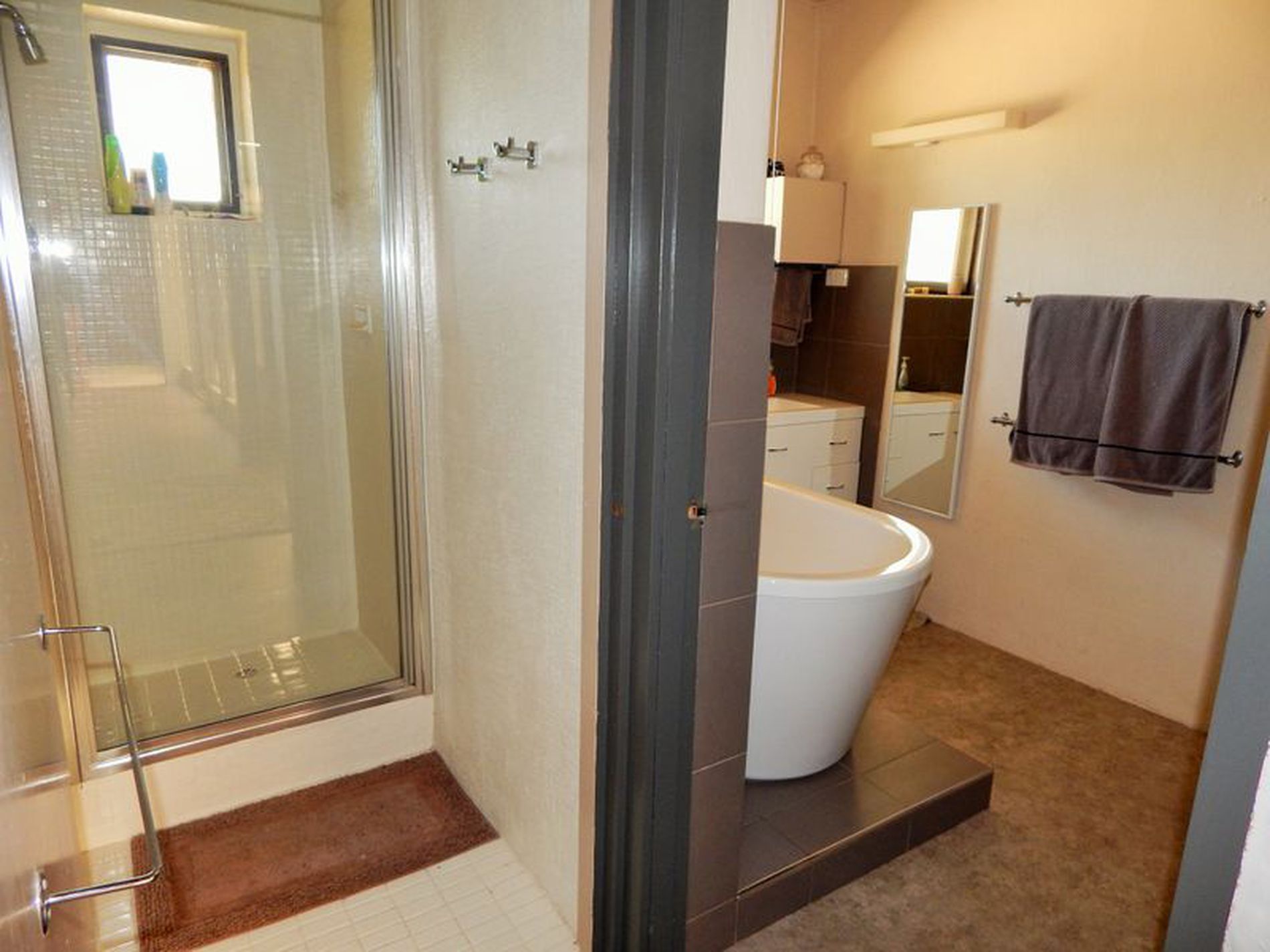 • Modern bathroom recently renovated features luxury bath tub, strip heating for those cold mornings and a separate shower.
