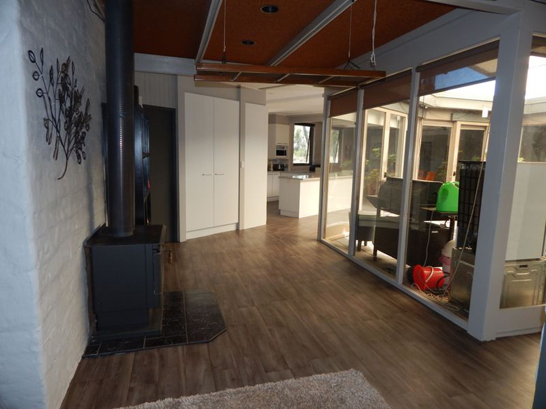 • Home is serviced by ducted air conditioning and wood heating.