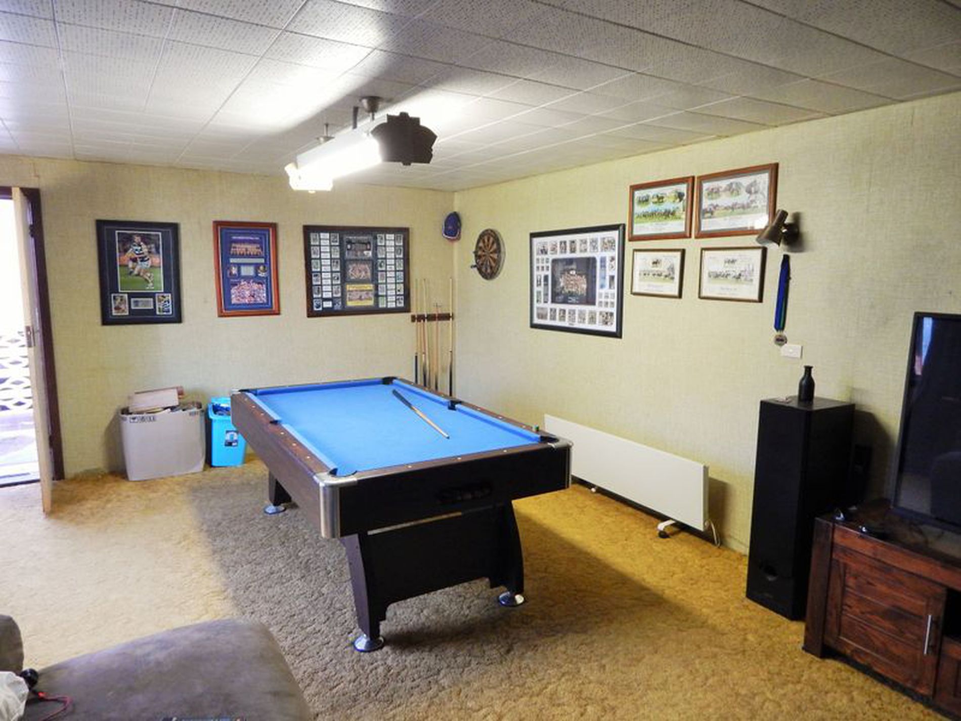 • The backyard is generous and has a detached games/billiards room with a/c, it also feature a large double roller door shed which would easily fit 4 cars, its powered and has concrete slab.