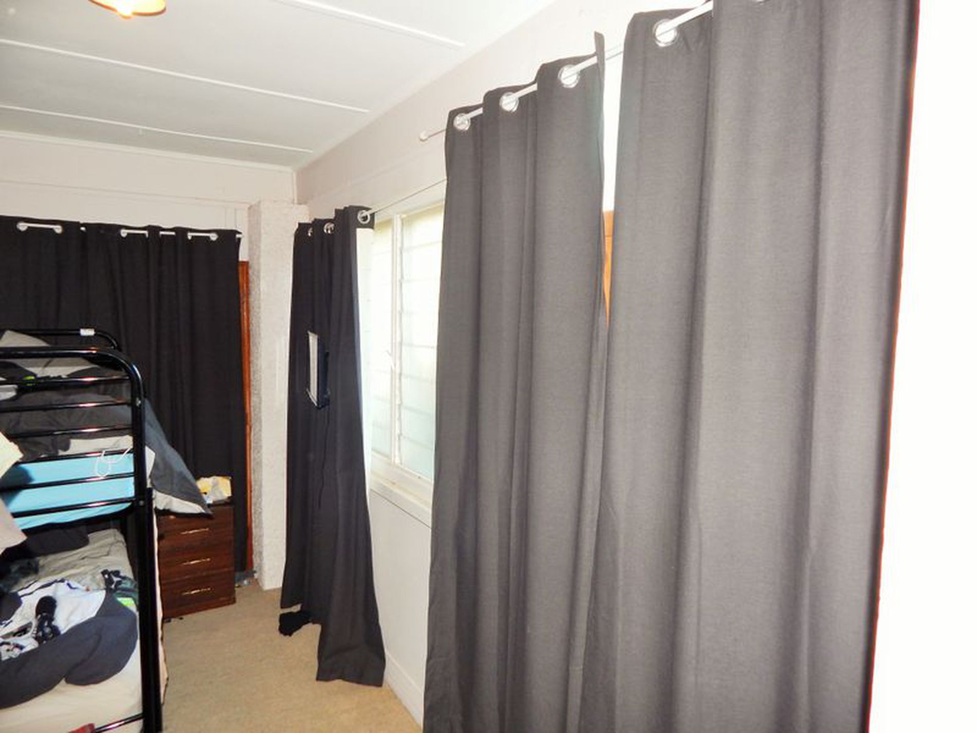• Good sized master bedroom with built in cupboards, separate sunroom/sleep out, polished timber flooring, and a ceiling fan.