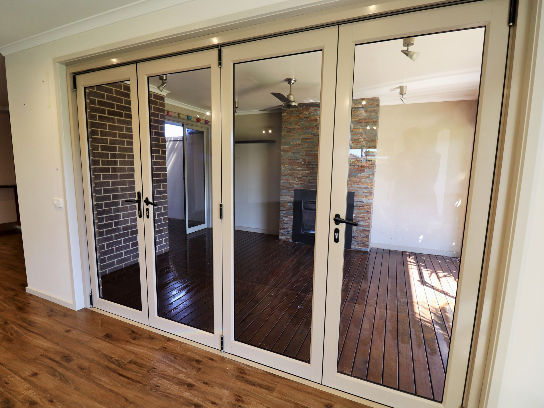 • Large open plan kitchen/living area that opens out with glass bi fold doors to entertainment area